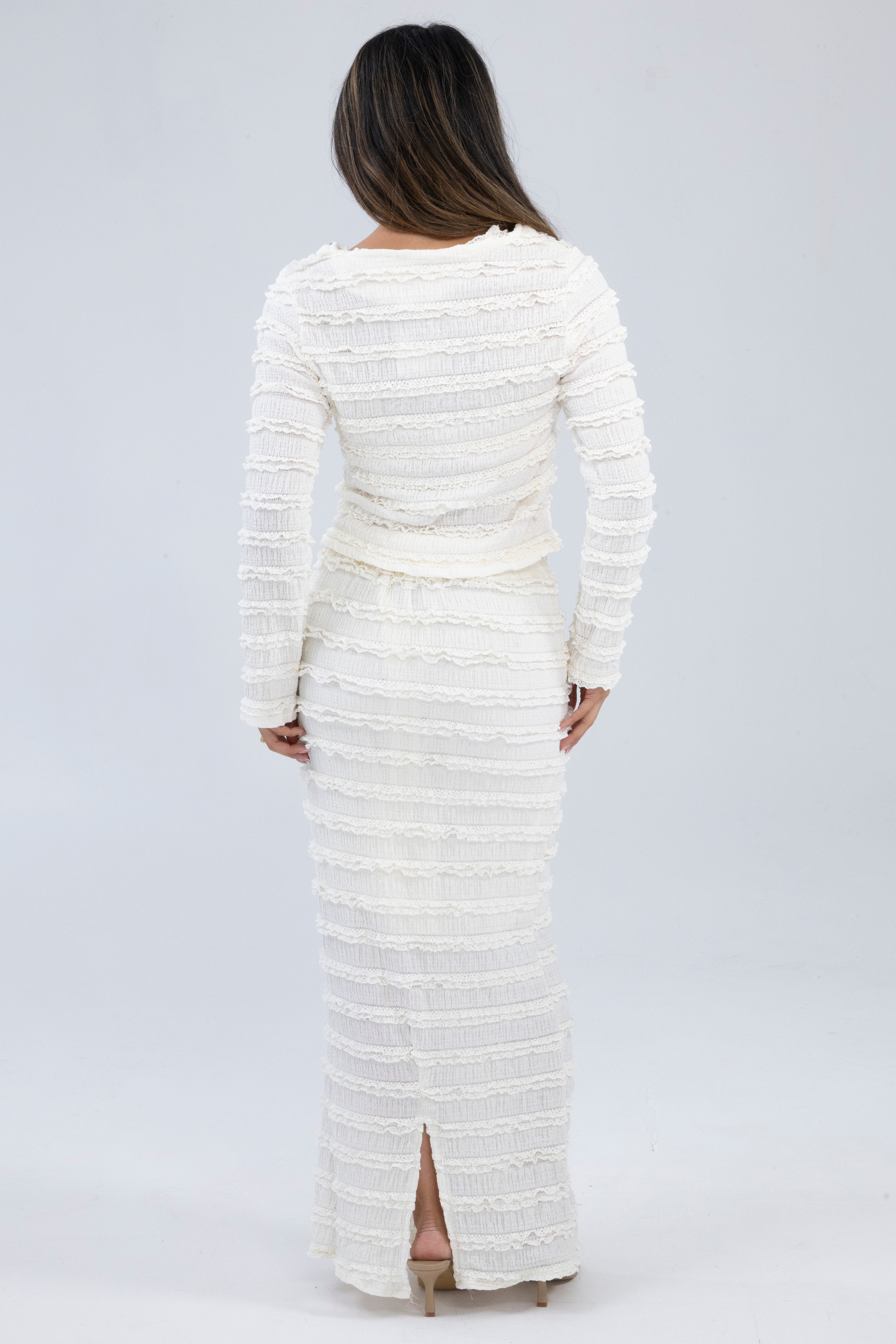 Ideal for chic daytime events or dressed-up evenings, this set can be styled as a full look or worn separately for versatile outfit options. The soft cream hue brings a polished lightness that works beautifully year-round.