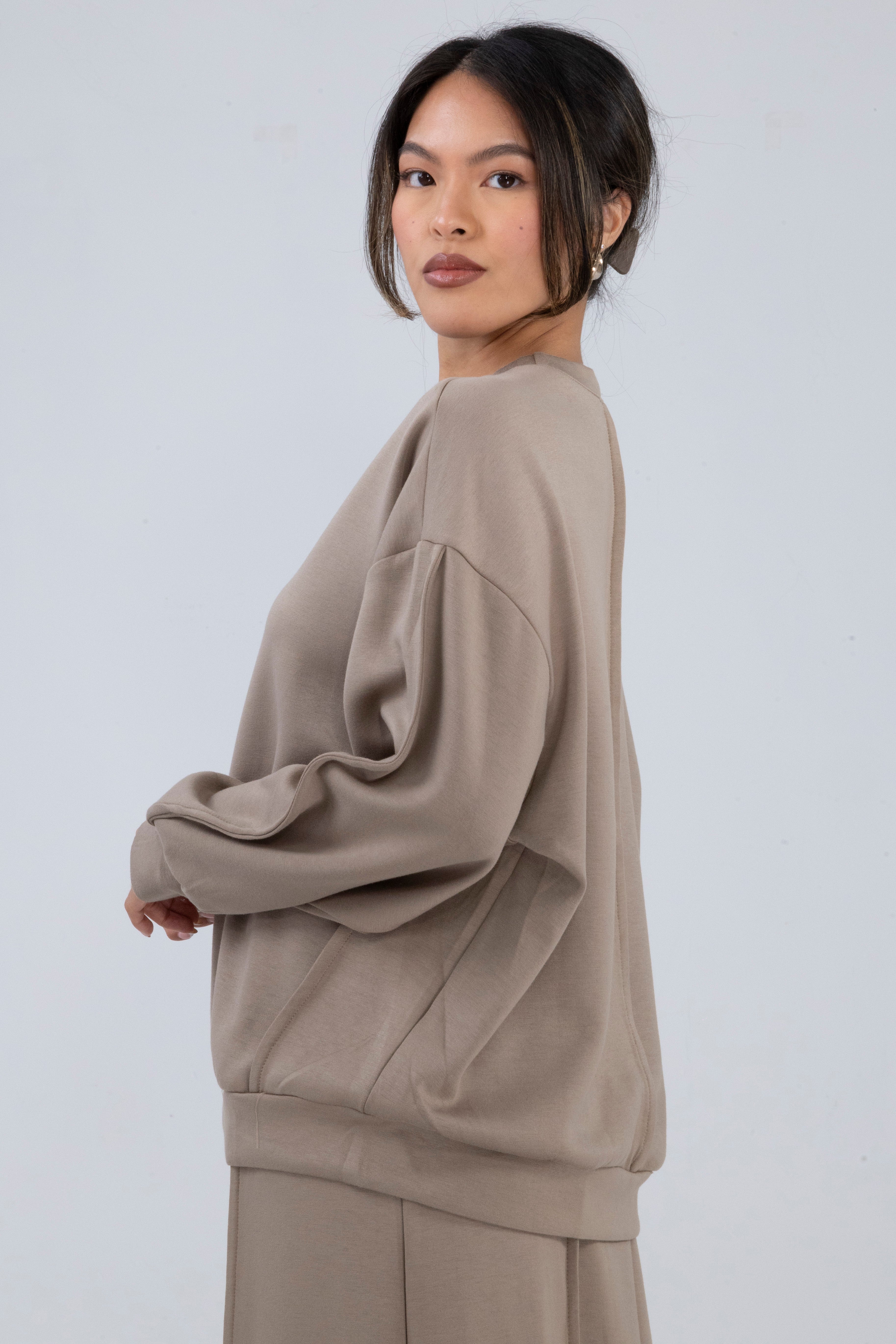 Ideal for off-duty days or styled up with accessories, this set transitions seamlessly from lounging to casual outings. The neutral taupe shade makes it endlessly versatile and easy to mix and match with your wardrobe staples.